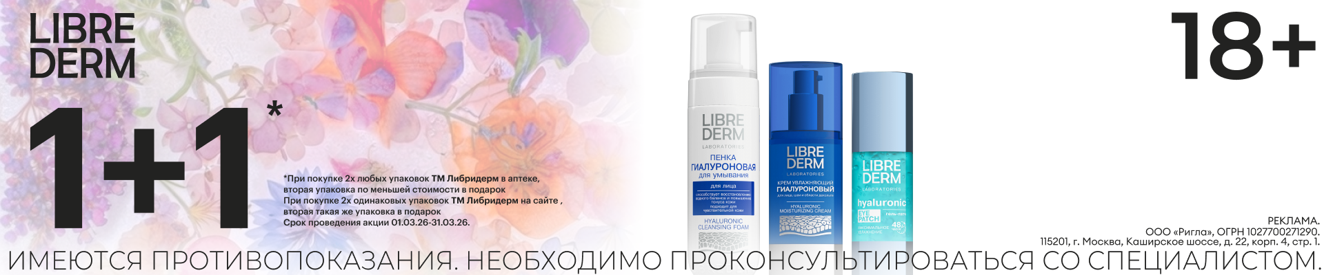 При покупке 2-х одинаковых упаковок ТМ Либридерм на сайте, вторая такая же упаковка в подарок.